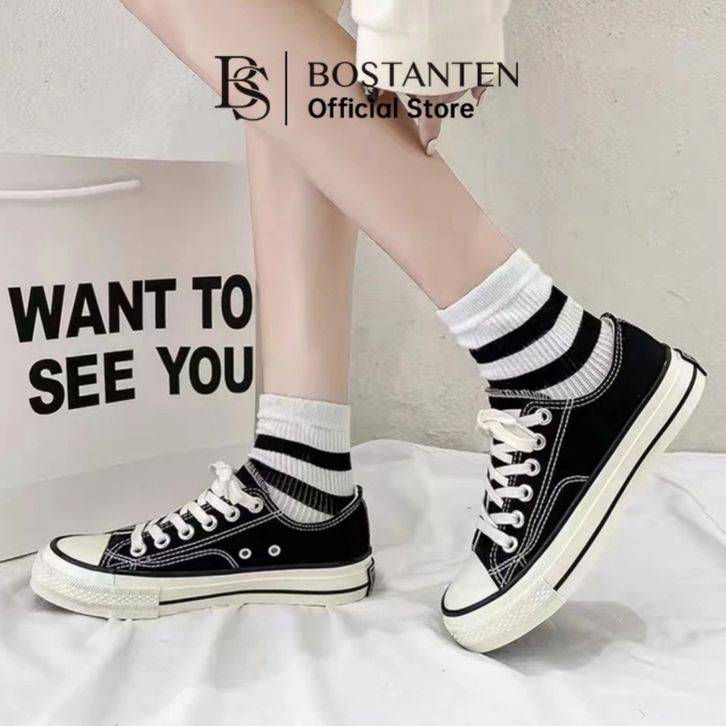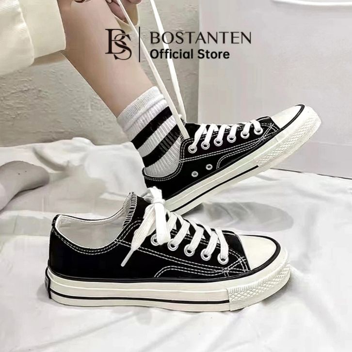 BOSTANTEN SEPATU KANVAS WANITA | SEPATU CASUAL SNEAKERS | SEPATU SEKOLAH HITAM PUTIH | SEPATU PELAJAR MURAH ORIGINAL