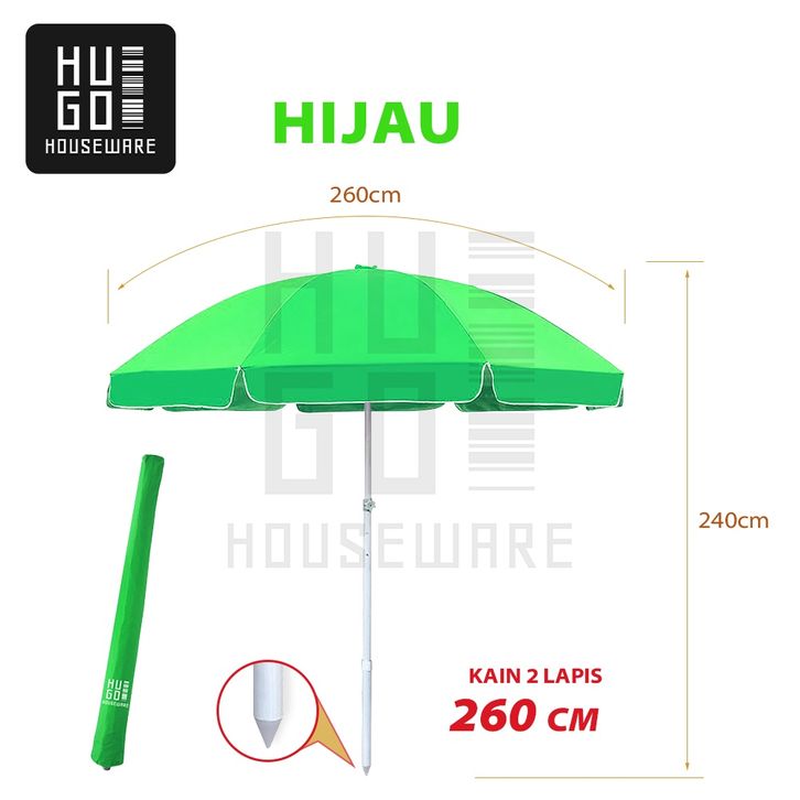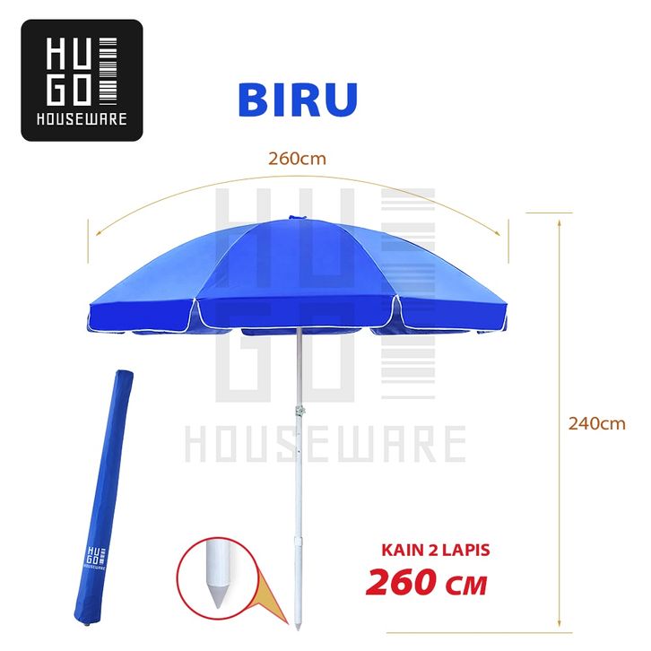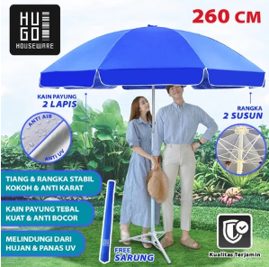 [Star] Hugo Payung Jualan Tenda Lapak 260 Cm Dua Lapis Dobel Jari Jumbo Anti Uv Anti Angin