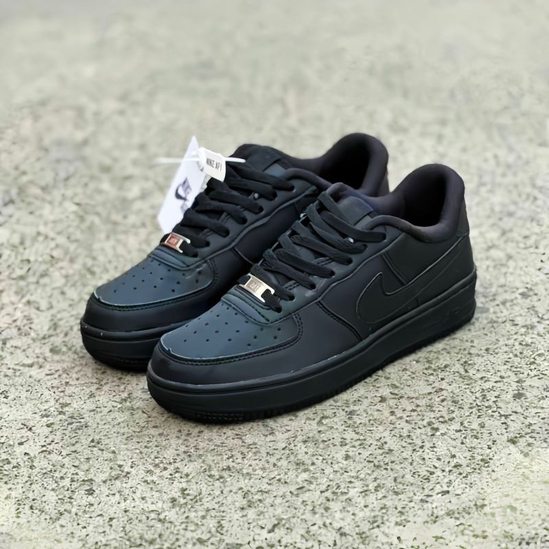 DP 0 SEPATU PRIA WANITA - SNEAKER AIR FORCE 1 FULL BLACK E TEMBUS TERBARU KEKINIAN SNEAKERS AF1 HITAM SEKOLAH