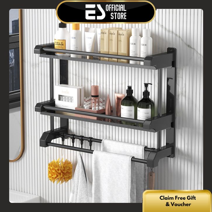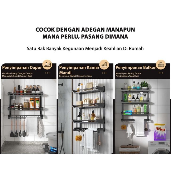 Rak Dinding Tempel Kamar Mandi Rak Bumbu Dapur Black Edition Multifungsi