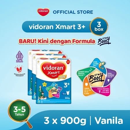 3 BOX Vidoran Xmart 3+ Vanilla Madu 900gr Susu Formula Pertumbuhan Anak 3-5 Tahun/Susu Vidoran Xmart 3+