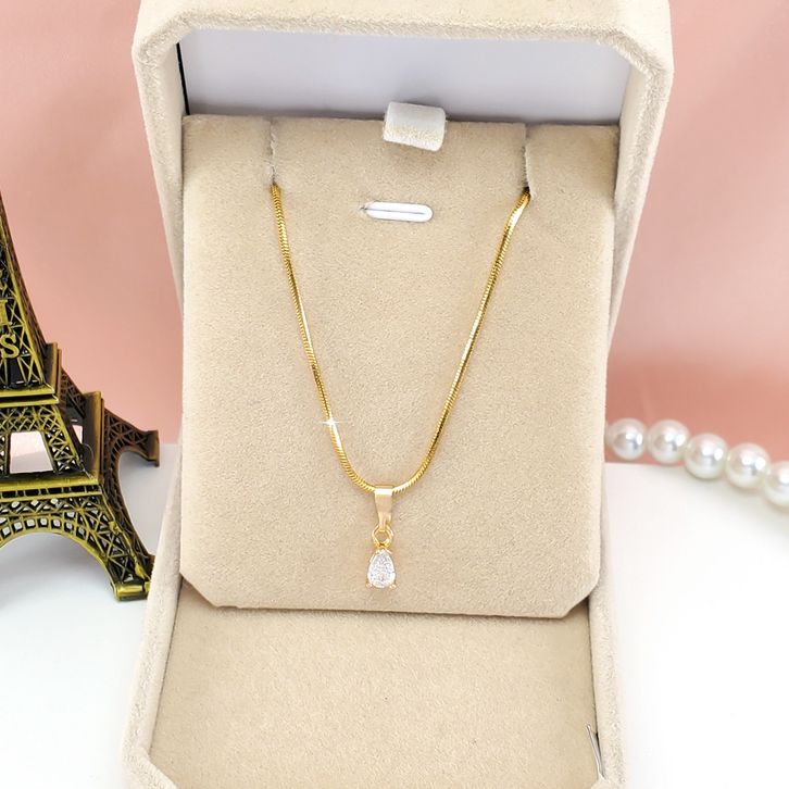 PERHIASAN WANITA KALUNG TITANIUM MATA SATU OVAL MINI CANTIK