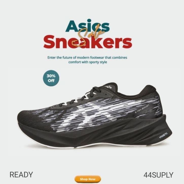 Realpicture Sepatu Running Asics Novablast 4 Black White