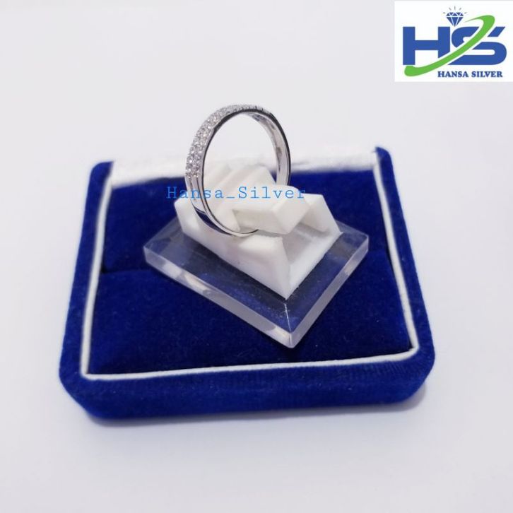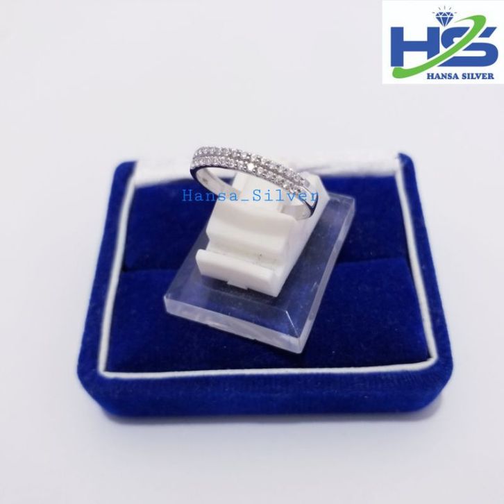 Cincin Perak Asli Silver 925 Lapis Ems Putih Model Listring Dua Baris Permata - Cincin Wanita Anti Karat