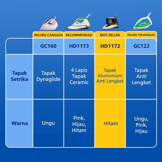 Philips Official Store - Setrika Philip Original Gosokan Baju Kering Classic HD1172/99 Tapak Anti Lengket Terbaik