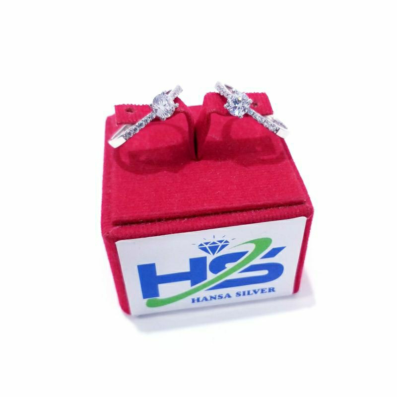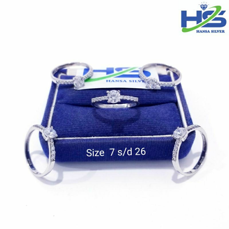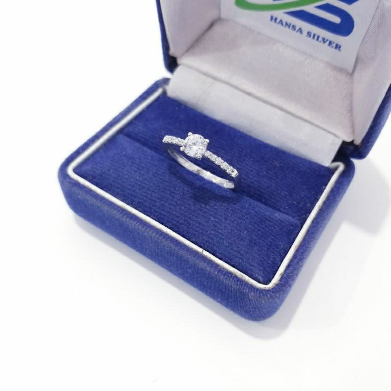 Cincin Perak Silver Asli 925 Lapis Ems Putih Model Desi Batu Putih - Cincin Wanita Anti Karat