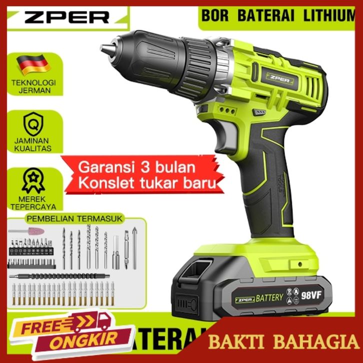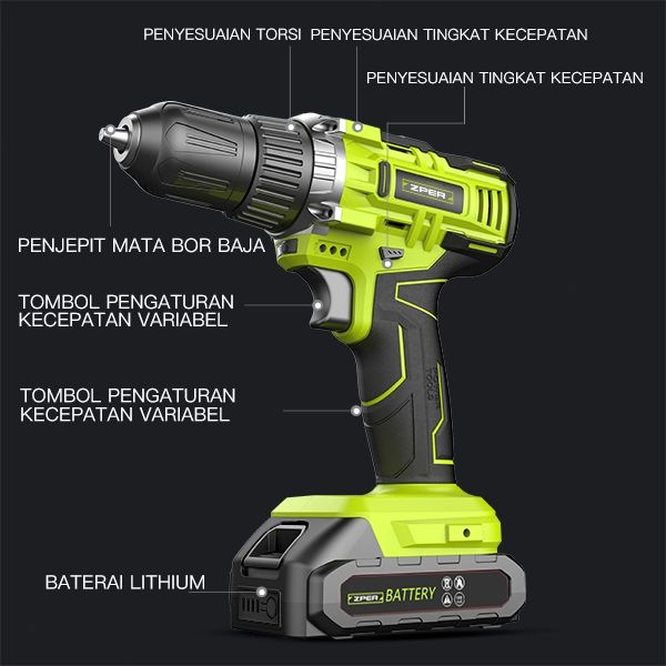 ZPER Bor Listrik Mesin Bor 21V Baterai Tangan Cordless Drill Battery Bor Tanpa Kabel Bor Lithium ZP011