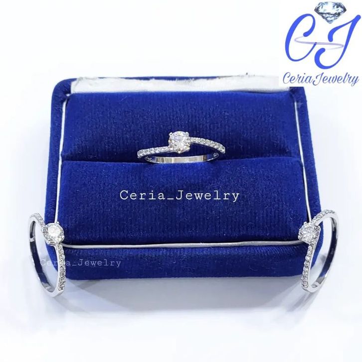 Cin cin Perak Asli Silver 925 Lapis Ems Putih Model Soliter Permata 1 ZigZag - Cin Cin Anti Karat - Perhiasan