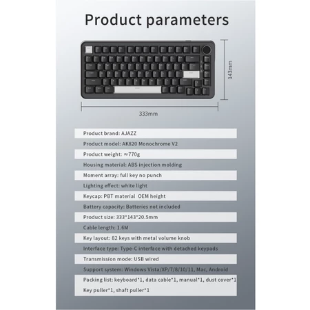 [Mall] Ajazz AK820 Monochrome V2 75% Mechanical Keyboard Gaming Hotswappable With Gasket Mount