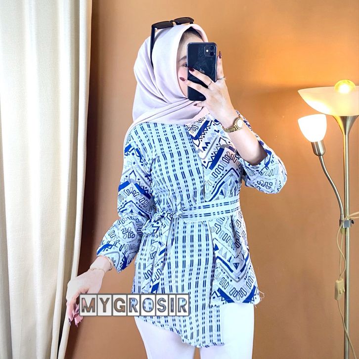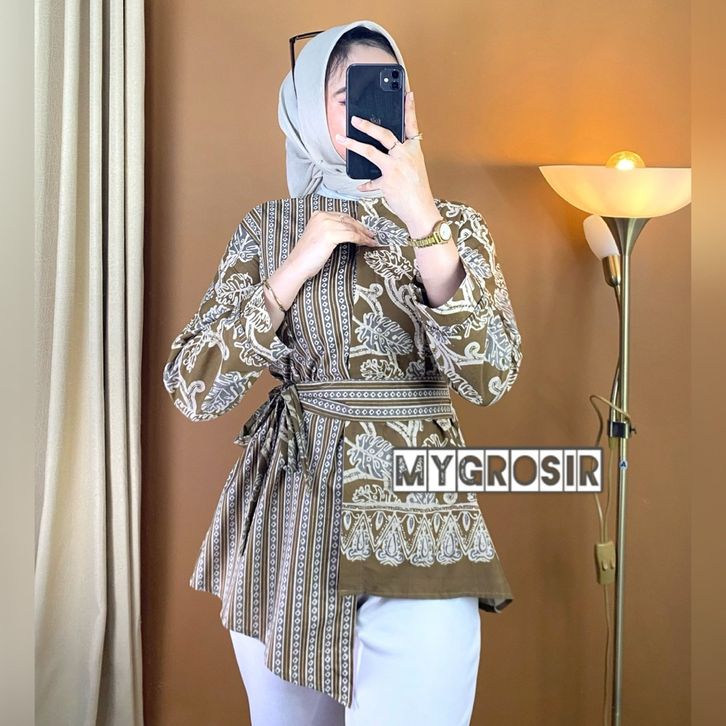 Blouse Batik Wanita Lengan Panjang – Atasan Batik Modern Premium Elegan Kekinian Kemeja Kombinasi Motif Elora choco