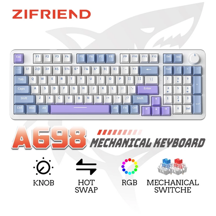 Keyboard Mechanical ZIFRIEND AG98 Gasket Mount Ergonomic Design Keyboard Gaming Garansi 1 Tahun Free Ongkir