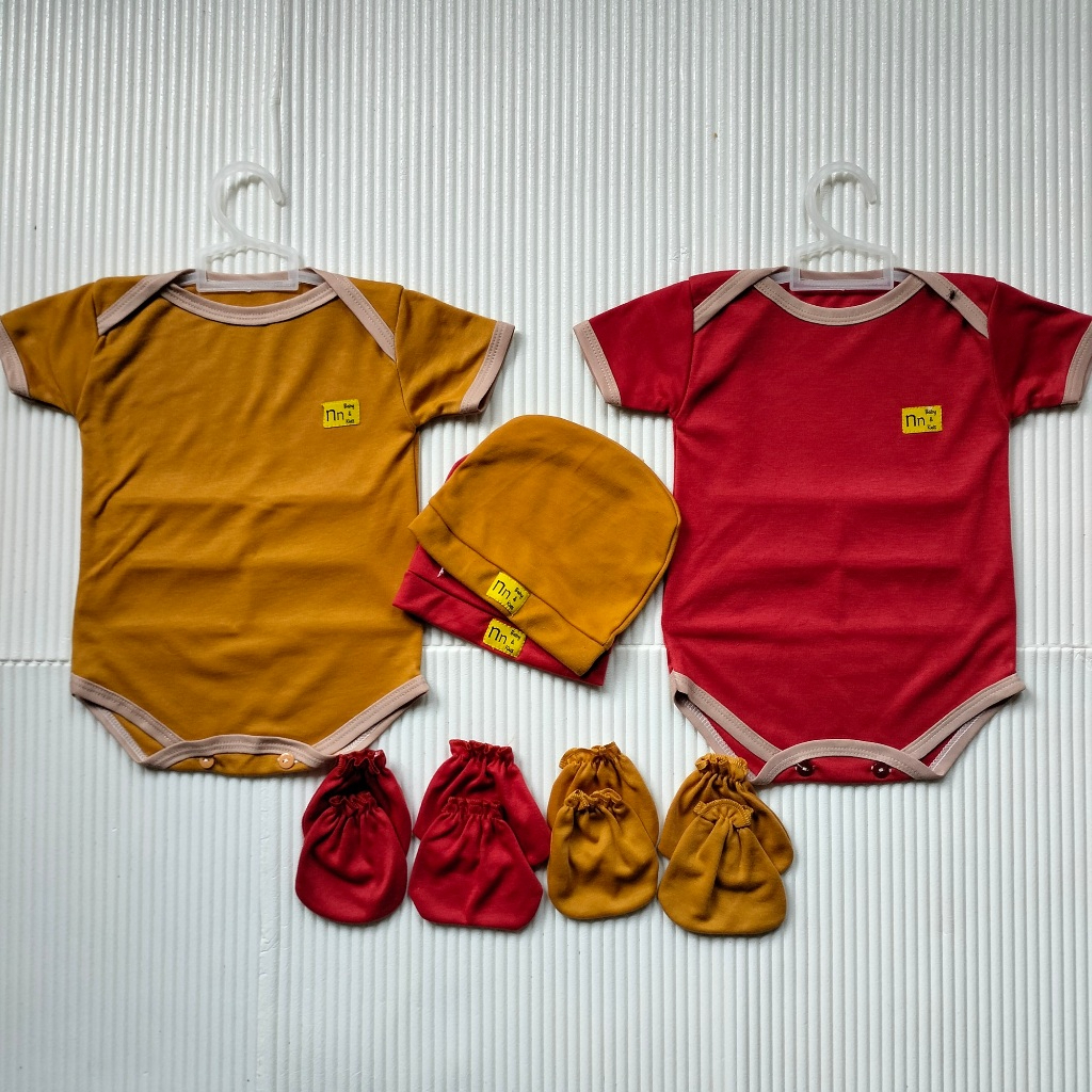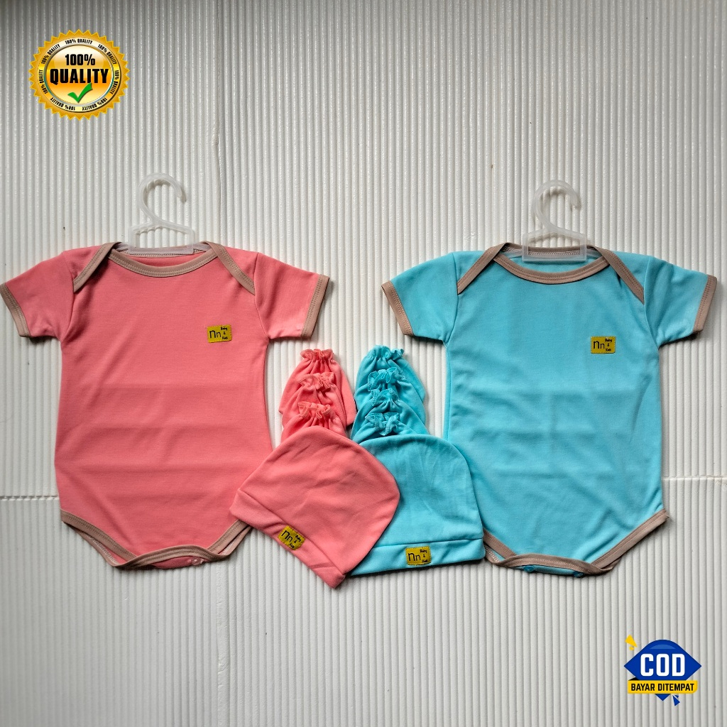 Nn Baby 2 Set Bodysuit Baru Lahir 0-12 Bulan Warna Jumper Newborn Topi Sartaki