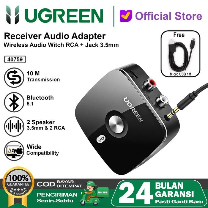 UGREEN 2in1 Audio Receiver Transmitter Bluetooth 5.2 Dual Paring With RCA TX RX Mode 35523 Original Official Store