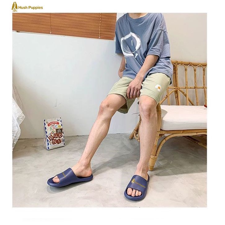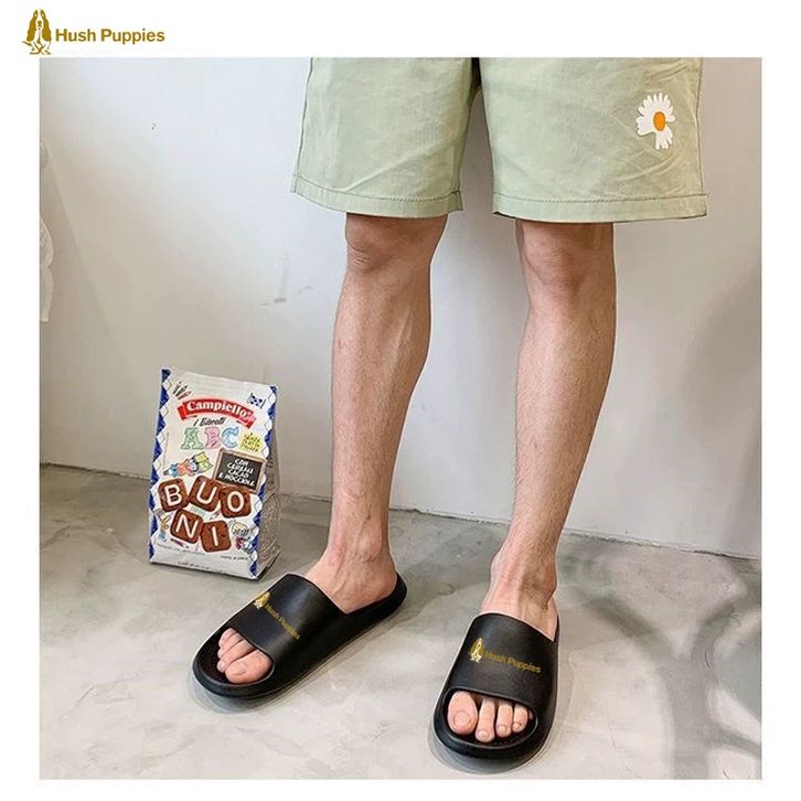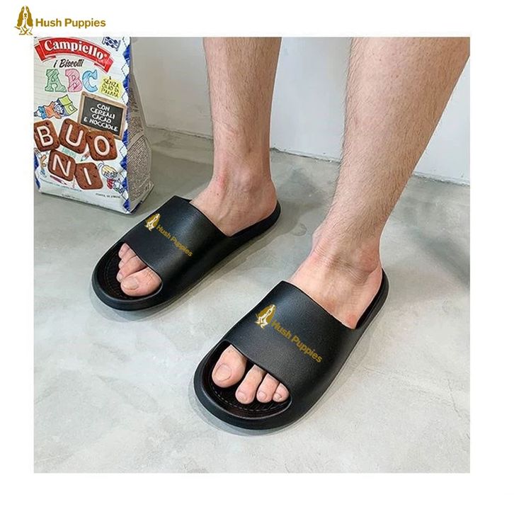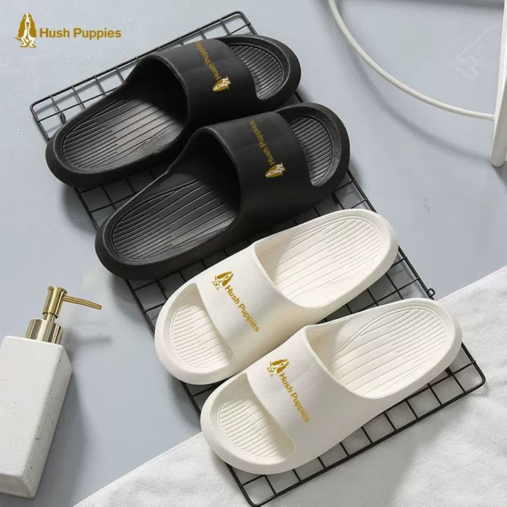 Sandal Hush Puppies Pria Putih Sendal slop Pria Karet Kamar Mandi Sendal cowo sendal cewe Anti Slip Size 40-44 Hitam