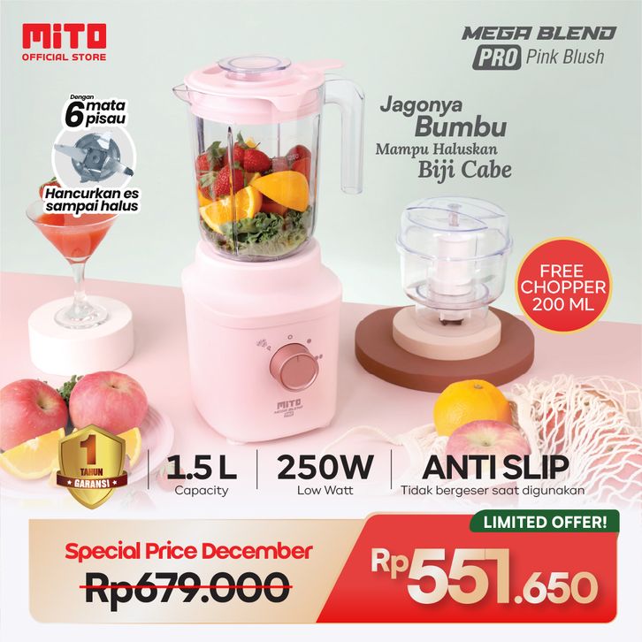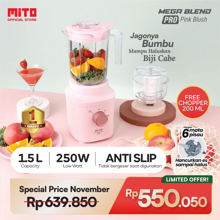 MITO MEGA BLEND PRO BL300 - 1,5L Jar 2 Tingkat Kecepatan + Pulse + 6 Mata Pisau dengan Ice Crusher