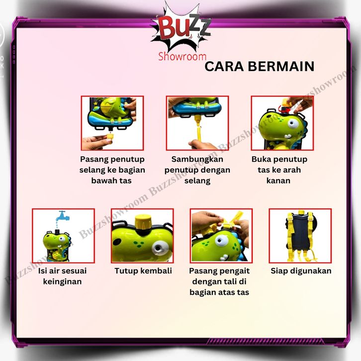 Water Gun Backpack DINO Giraffe Jerapah Mainan Air Tas Ransel Semprot