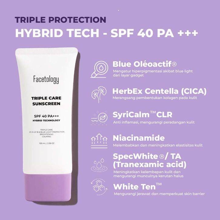 Facetology NON COMEDOGENIC SUNSCREEN TESTED BIG SIZE Triple Care Sunscreen SPF 40 PA +++ 100ml / IKUSEI