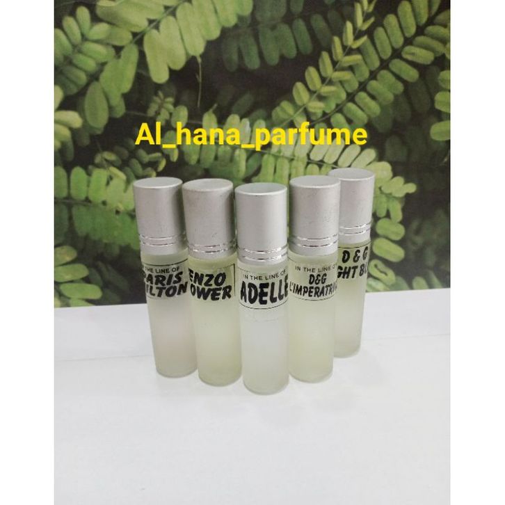 1000 bunga, Aigner blue, Angel heart, Anna Sui dream, Avril, Baccarat, Black opium, Britney fantasi, Buble gum, Bulgari aqua, Bulgari extrem, Cappucino, Cherry blossom, D&g l'imperatrice, Davidof man, Dior sauvage, Dunhil blue, Escada cherry, Escada sexy, Eternity man, Green tea, Gucci gardenia, Harajuku love, Hugo boss energize, Incanto shine, Jlo still, Kasturi kijang, Kenzo bali, Kenzo batang, Kopi bali, Lovely, Lux, Malaikat subuh, Melati, Melon, Nagita slavina, Paris hilton, Pink chiffon, Polo sport, Raffi ahmad, Sarah j.p, Selena gomes, Silver, Soft, Strawberry, Taylor swift, Vanilla, Vic romantic, Vic scandalous, Victoria bomshel