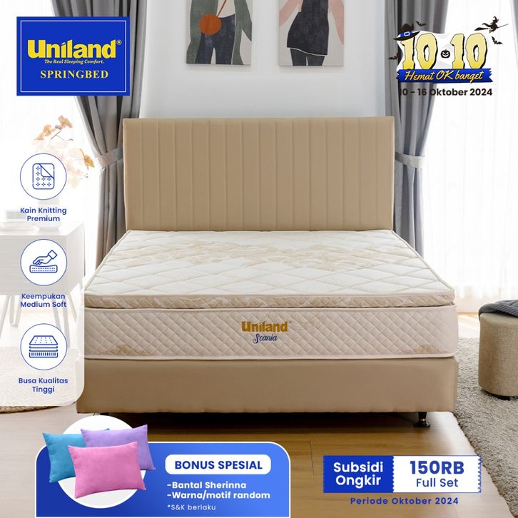 Uniland Springbed Scania Pillowtop - Full Set Kasur Spring Bed