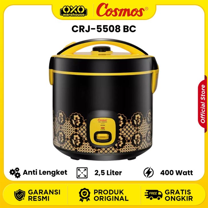 Cosmos Rice Cooker 2.5 L CRJ-5508 BC Garansi Resmi motif Batik Hitam Kapasitas Besar Anti Lengket