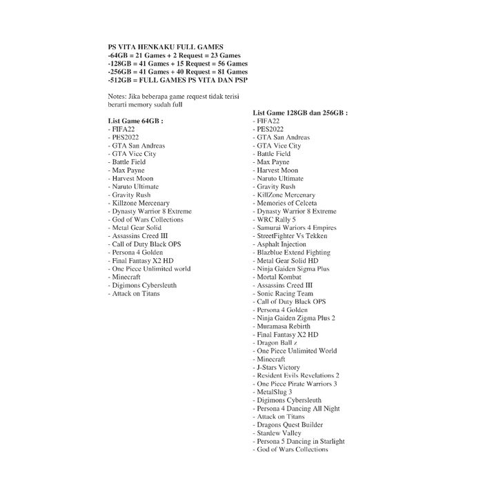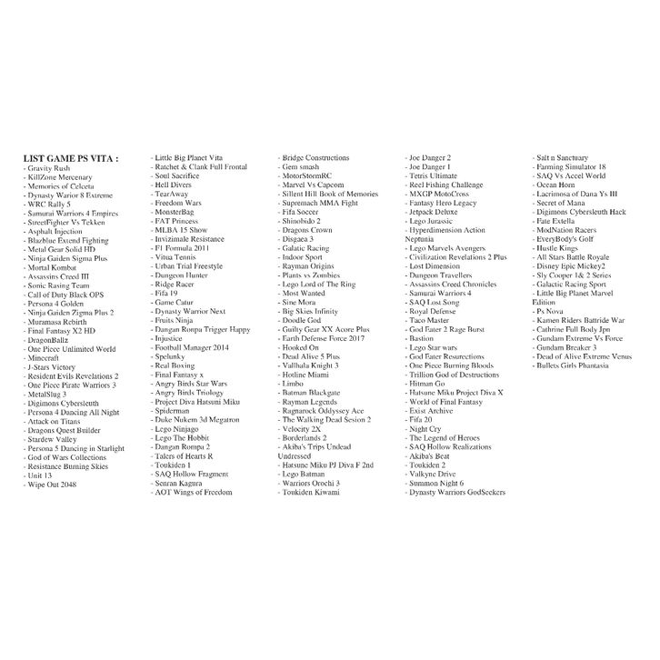 PS VITA SLIM / PSVITA FULL GAME BEBAS REQUEST GARANSI 1 BULAN gratis ongkir