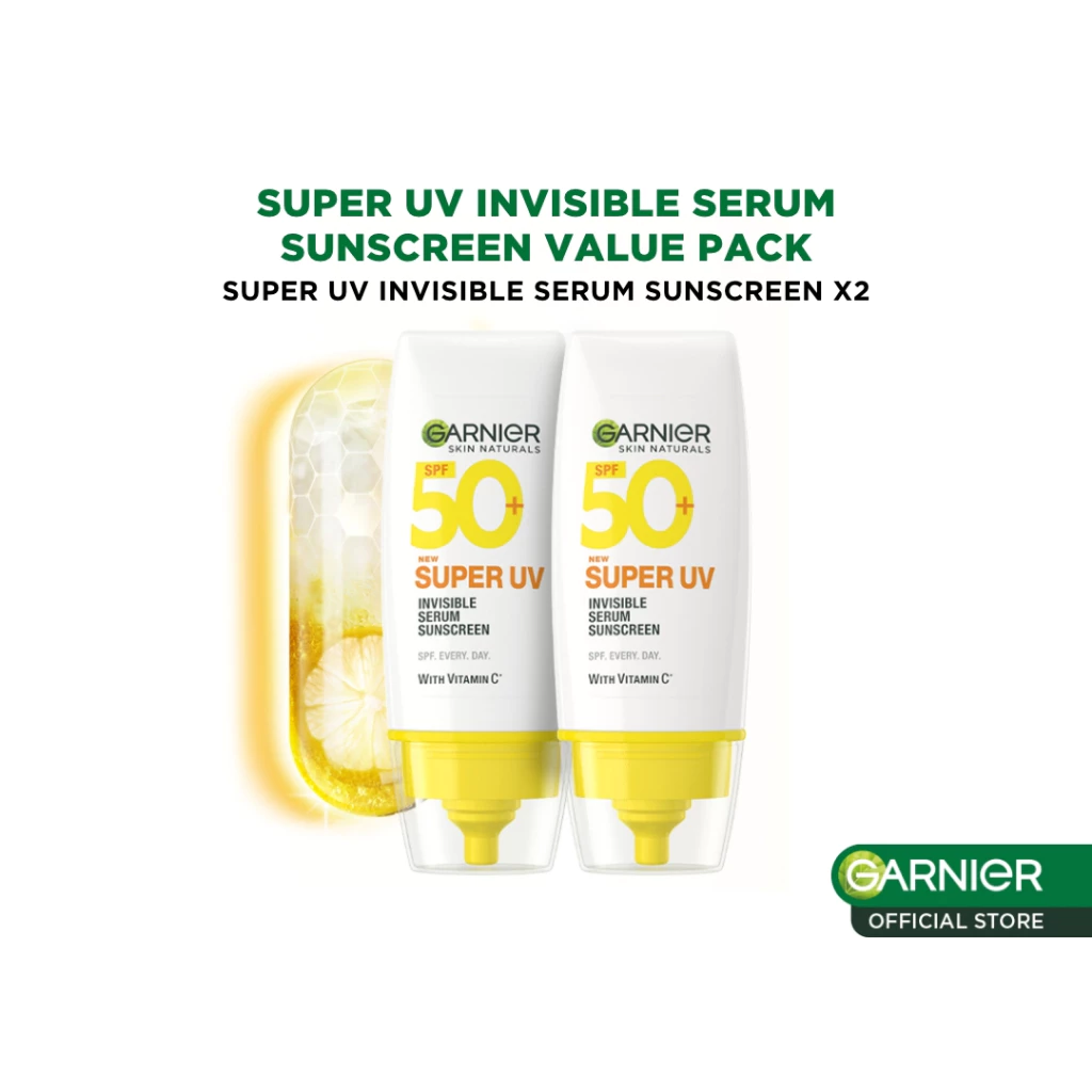 (PAKET HEMAT ISI 2) Garnier Super UV Invisible Serum Sunscreen SPF 50+ PA++++ Vitamin C Skin Care 30ml Garnier Sunscreen