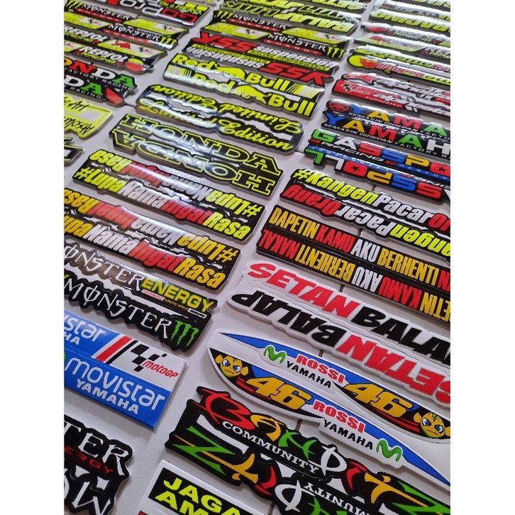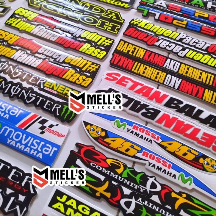 Seticker Motor jktgrosir/ 100 pcs stiker motor mobil helm kaca tulisan mendatar isi 100 stiker motor tulisan panjang s