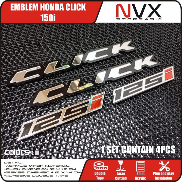 Logo Motor Emblem Honda Click 125i 150i Stiker Logo Timbul isi 4 pcs Vario 125 New Old 150 Karbu PGMFI ESP Thailand CLI