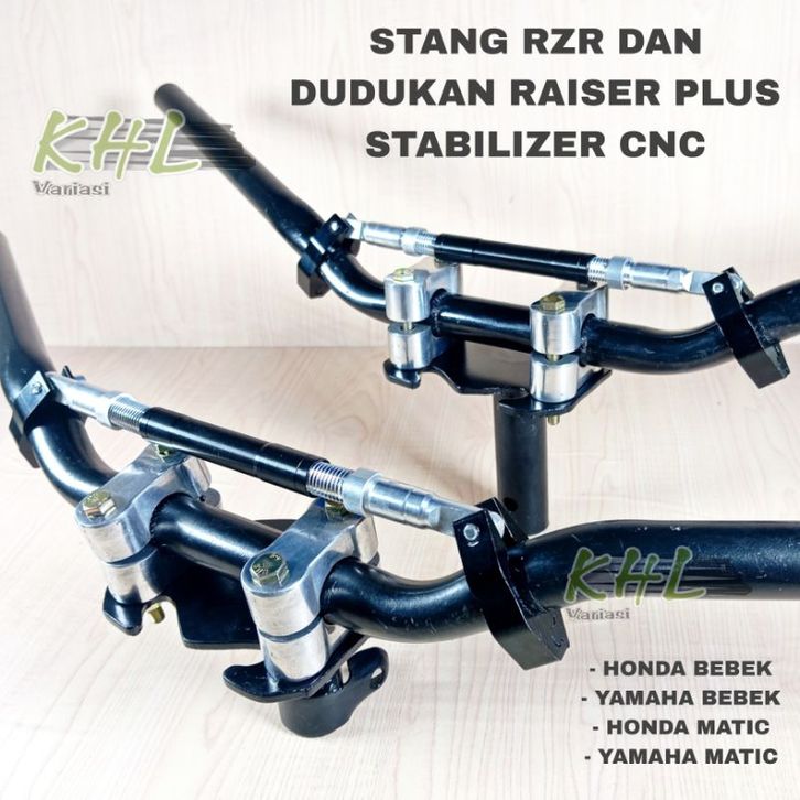 Setang Motor Stang Rzr plus Stabilizer & Dudukan Stang Universal Honda Yamaha Matic Bebek Paket Satu Set Setang Stir Ad