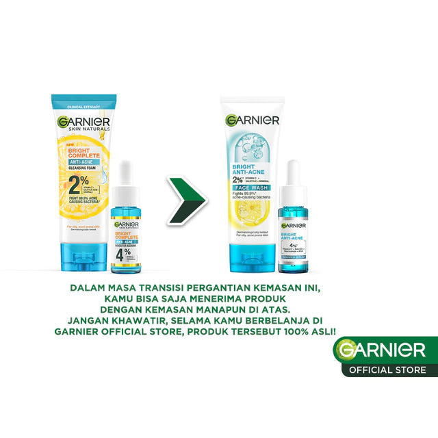 Garnier Official Store | Garnier Bright Complete Anti Acne Starter Kit Serum 15 ml + Foam 100 ml | Garnier Facial Wash