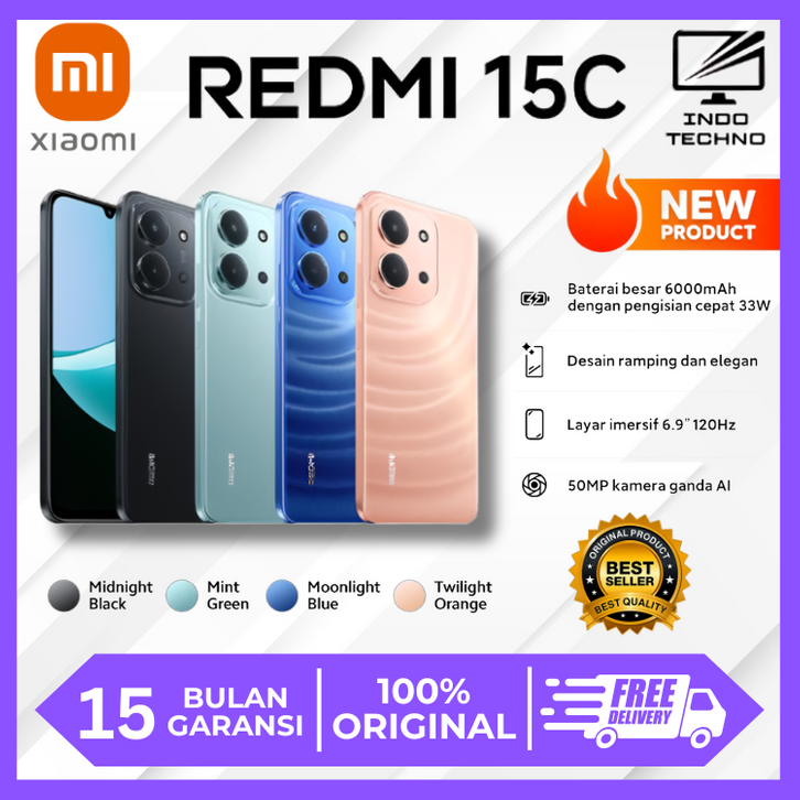 HP Xiaomi Terbaru Redmi 15C (6GB/128GB) (8GB/256GB) | Baterai 6000mAh 33W Murah 1 Jutaan