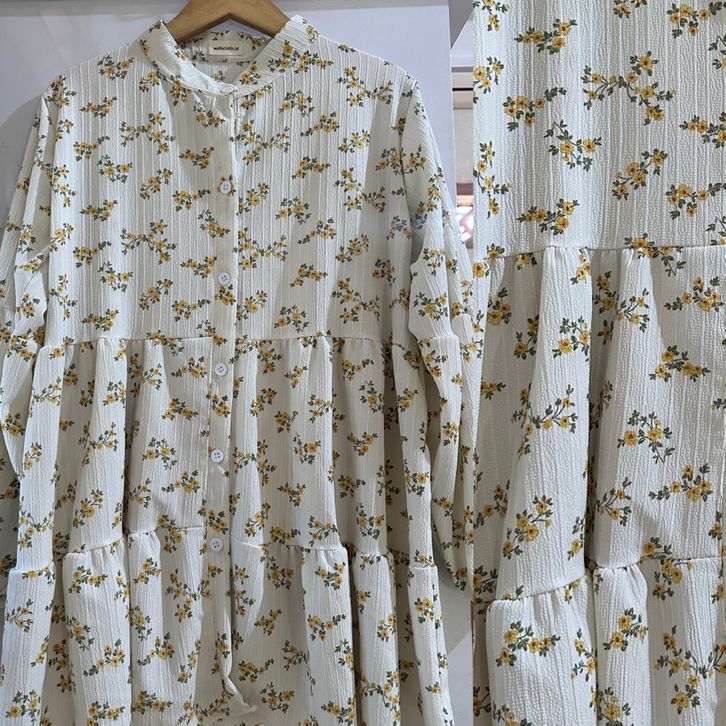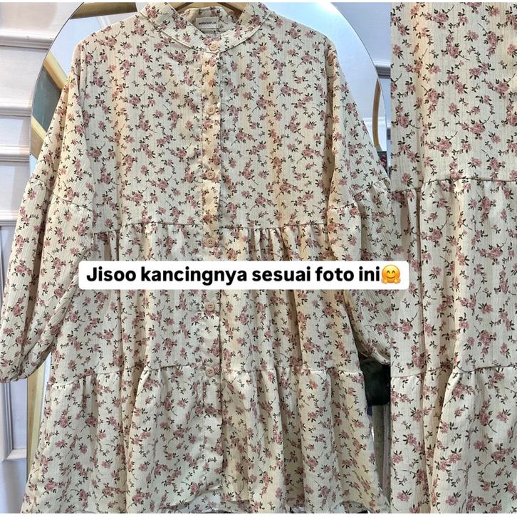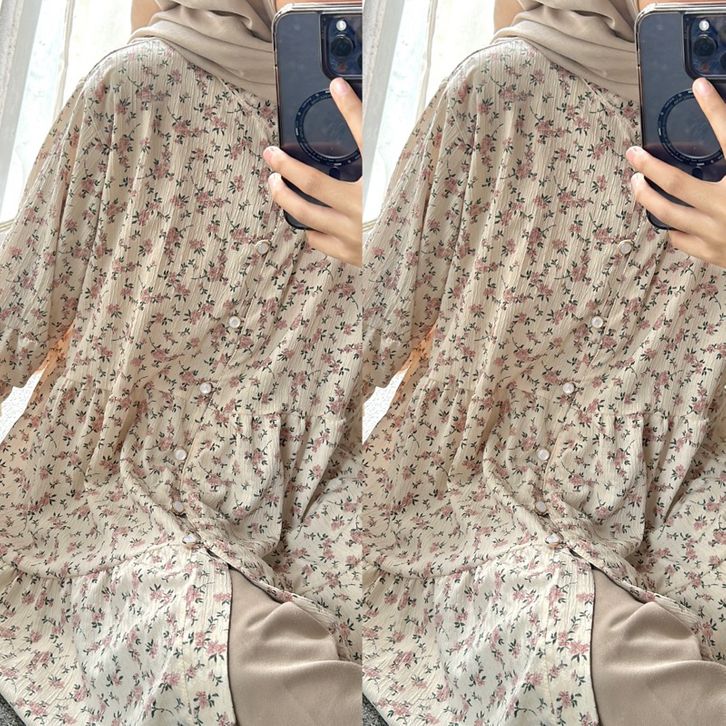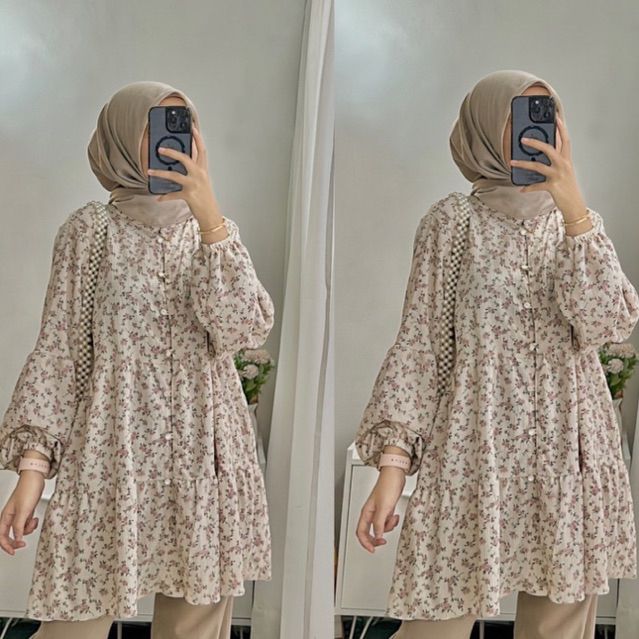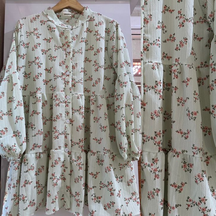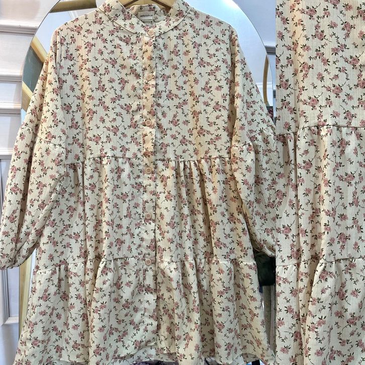 Tunik Lengan Panjang Atasan Korean Blouse Vintage Babby Doll Motif Bunga Atasan Kasual Bahan Crinkle Berkualitas Premium
