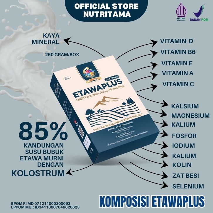 ETAWAPLUS KOLOSTRUM 250GRAM | SUSU TULANG KUAT | SUSU KAMBING ETAWA | SUSU ETAWA PREMIUM | SUSU ETAWALIN