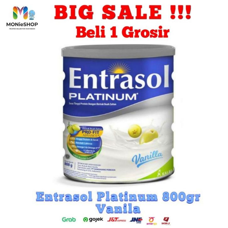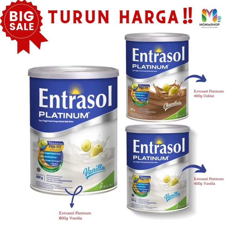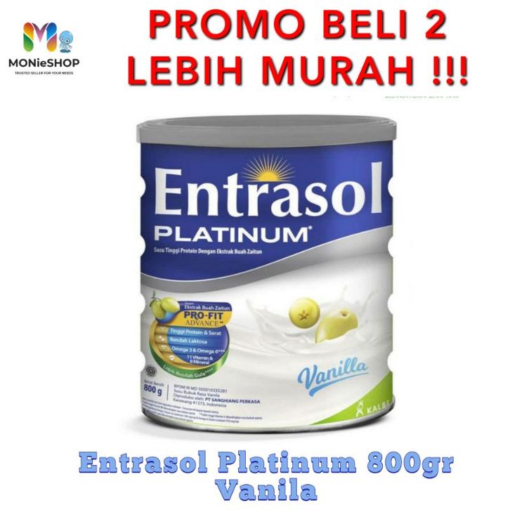 MONIESHOP - ENTRASOL PLATINUM 800 GR RASA VANILA/COKLAT KEMASAN BARU