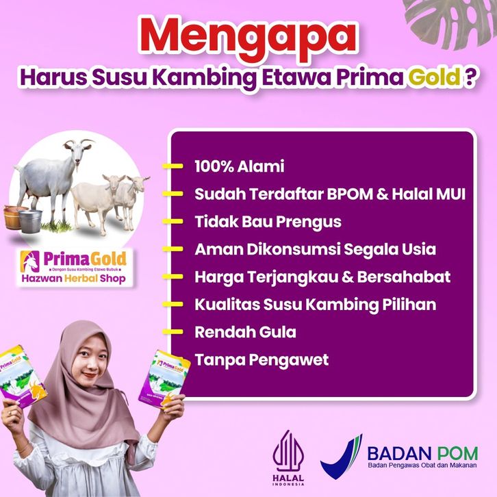 PRIMA GOLD DAN GOLDEN GOAT SUSU KAMBING ETAWA ASLI, HARGA MURAH DAN BERKUALITAS, ISI 4 X 200GRAM