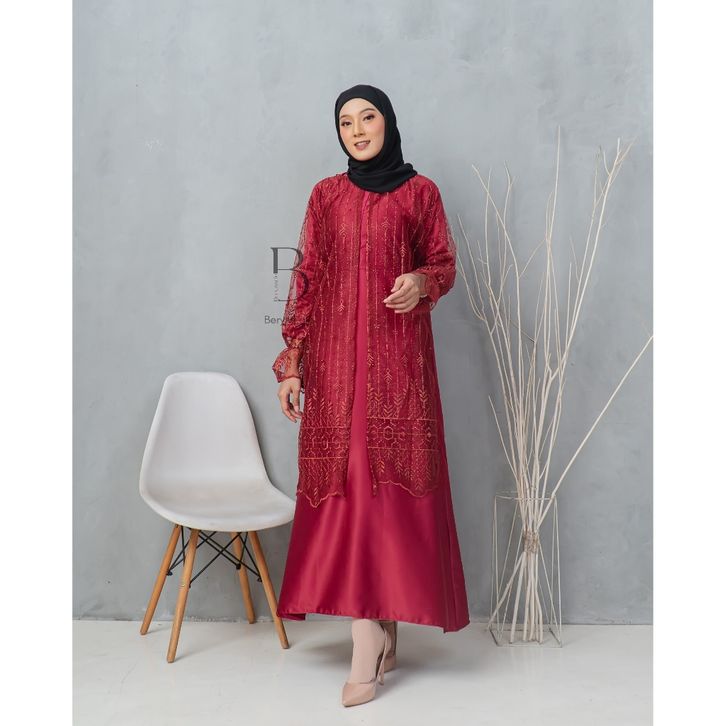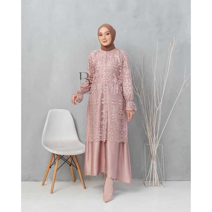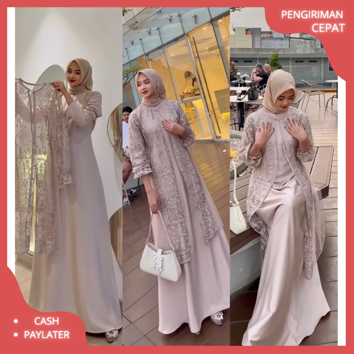 Dres Wanita Dress Kondangan Modern Dress Massi Dress Kondangan Dress Set Outer Brokat Motif Mix Tile Dot