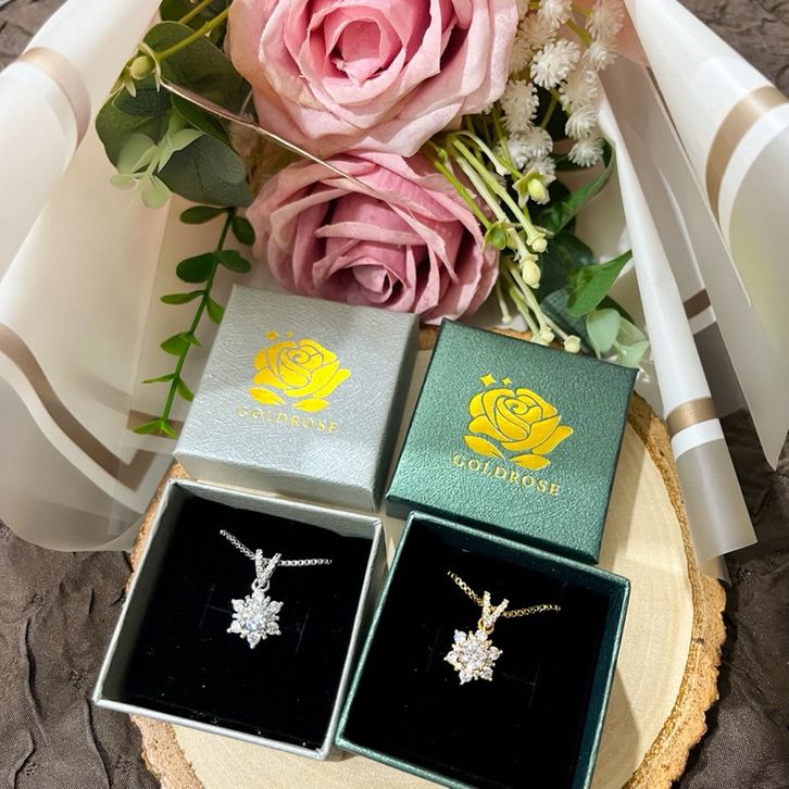 Kalungg Titanium SNOWFLAKE Lapis Ems 18 k ANTI KARAT crystal swarovski perhiasan lontin hadiah wanita