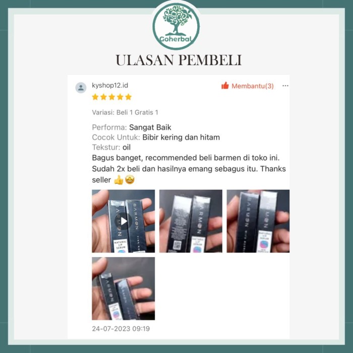 BARMEN LIP GLOW SERUM - MENCERAHKAN BIBIR HITAM - MELEMBABKAN BIBIR - BELI 1