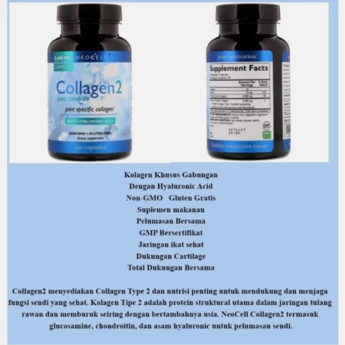 NEOCELL COLLAGEN TYPE 2 JOINT COMPLEX 2400MG ISI 120 CAPSULES ORIGINAL