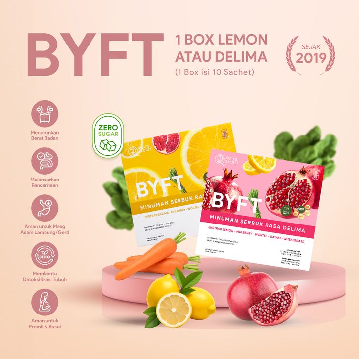 RICU'S SECRET BYFT LEMON DELIMA FIBER MINUMAN DIET PENURUN BERAT BADAN DAN DETOX 1 BOX ISI 10 SACHETS