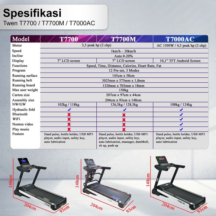 TWEN T7700 T7700M new Treadmill Elektrik Treadmill Listrik Treadmill Multifungsi Treadmill Murah