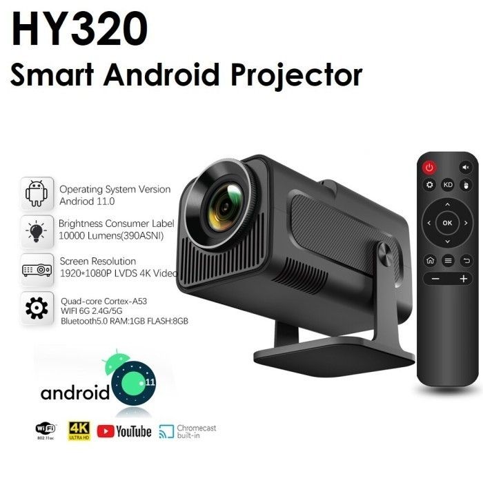 Proyektor Portable HY320 Android WiFi Bluetooth 390 ANSI Lumens Bioskop