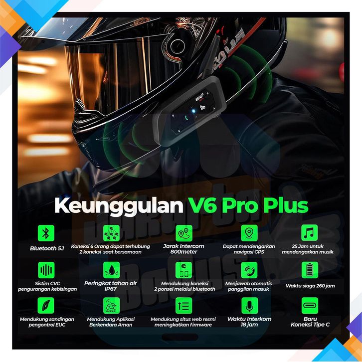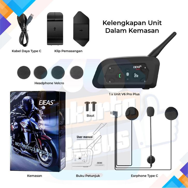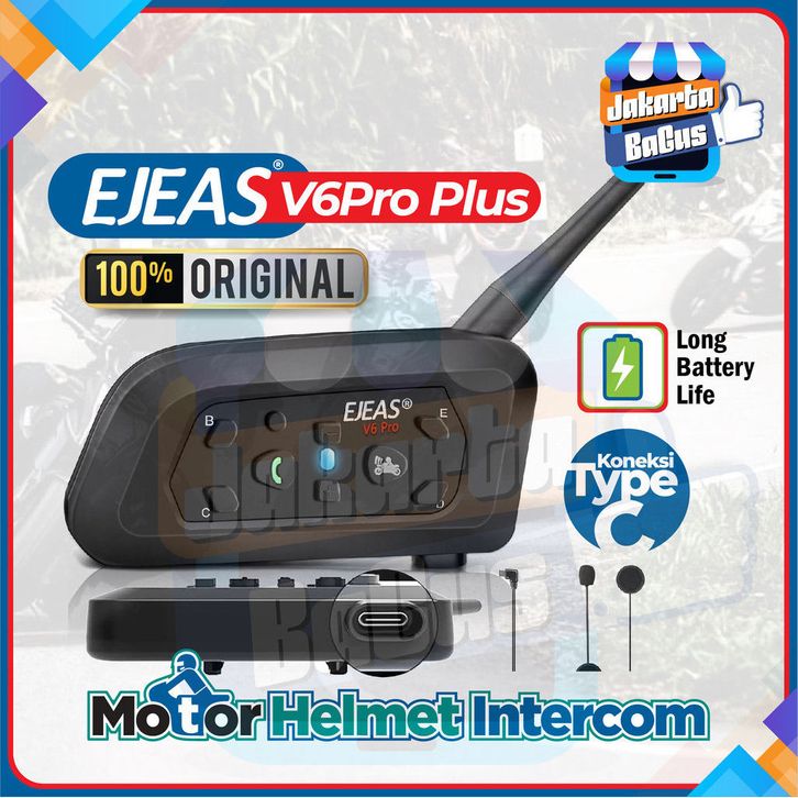EJEAS V6 PRO PLUS INTERCOM HELMET BLUETOOTH 100 ORIGINAL FULLSET BERGARANSI