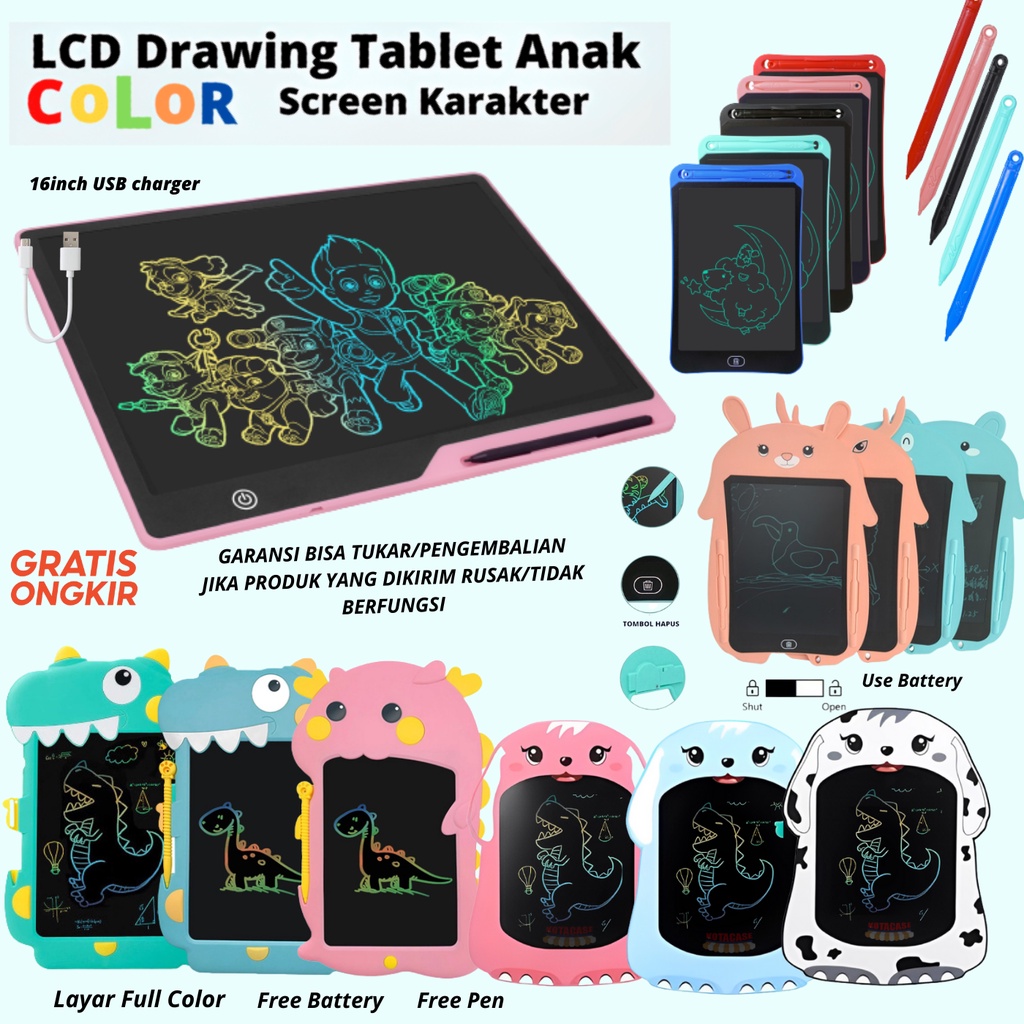 PAPAN TULIS GAMBAR MAINAN ANAK KARAKTER DINOSAURUS PENGUIN RABBIT PUPPY /LCD DRAWING WRITING TABLET 8.5INCH MAINAN EDU