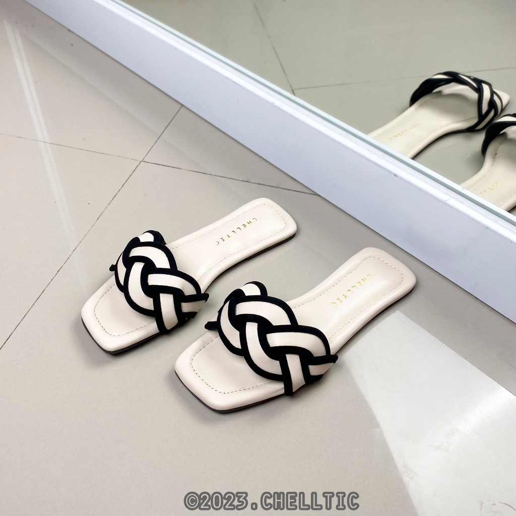 CHELLTIC Sandal Teplek Wanita Kekinian Slip On Kokop Sandal Selop Wanita Terbaru Sendal Flat Slop Anti Slip Sndal Flip Flop Cewek Warna Hitam-Coklat-Cream-Fuschia Ukuran 37-38-39-40 TermurahOngkir