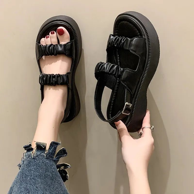 RK Sandal Tali Wedges Wanita Korea Sol Tebal Tali belakang SK02