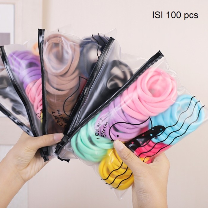 IK81 IKAT RAMBUT KOREA TOWEL RING BESAR SET 100 WOMEN HAIR ACC - ALL BLACK