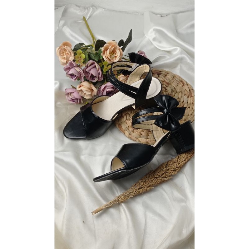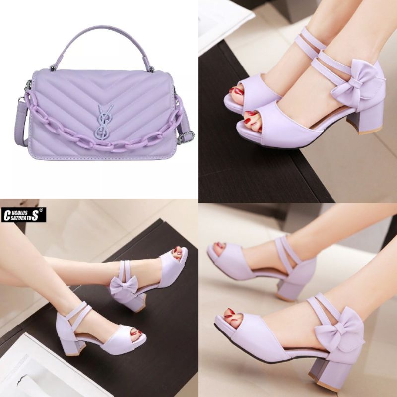 paket sandal heels hak tahu wanita dan tas selempang anggun