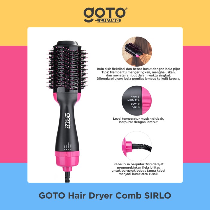 GOTO SIRLO HAIR DRYER COMB SISIR BLOW PELURUS CURLY PENGERING RAMBUT - BLACK