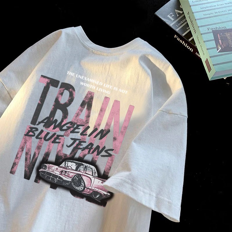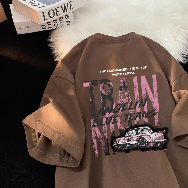 Forteid T-Shirt Lengan Pendek Baju Kaos Oversize Wanita Baju Korean Style Baju Atasan Wanita Terbaru (Tbain Car) Cotton Atasan Kaos